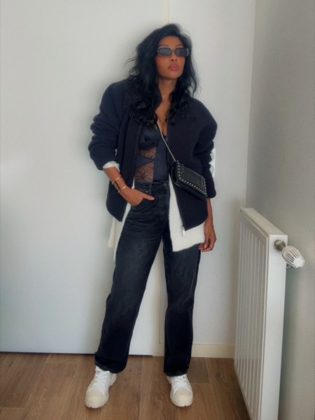 Comment porter le body en tenue noire chic ? Découvrez une idée de look total black élégant, avec astuces pour associer un body noir, des accessoires et des chaussures pour un style moderne et féminin.