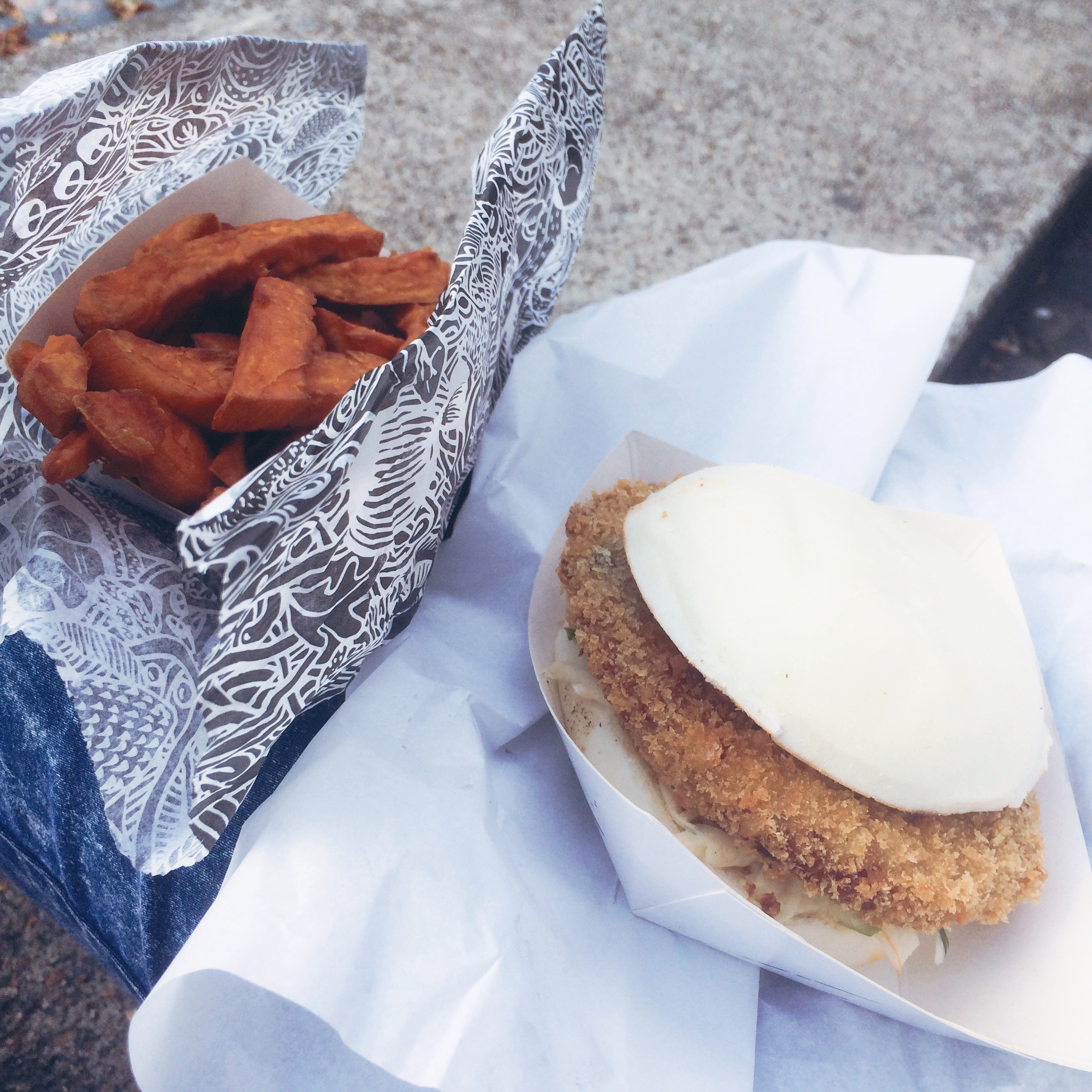 Coucou tout le monde ! Il y a déjà quelques semaines, je vous avais parlé du Bao Burger de chez Siseng. J’avais testé la version boeuf que j’avais aimée, mais aujourd’hui je peux vous dire que j’ai trouvé mieux ! (oui comment est-ce possible?!) son cousin le « Bao Burger Kaï » (Poulet mariné pané à la japonaise, sauce basilic et lait de coco, poivrons rouges confits, coleslaw maison et basilic frais) O.M.G j’ai été agréablement surprise par sa panure méga croustillante, le poulet était tendre et pas du tout sec ! Les assaisonnements sucré/salés fonctionnent à merveille ! Comme accompagnement j’avais repris les patates douces, qui selon moi se termine difficilement car le Bao Burger fait très bien son job, mais la sauce aux grains de sésame est délicieuse ! Bon la prochaine fois je testerais un « Bento » .