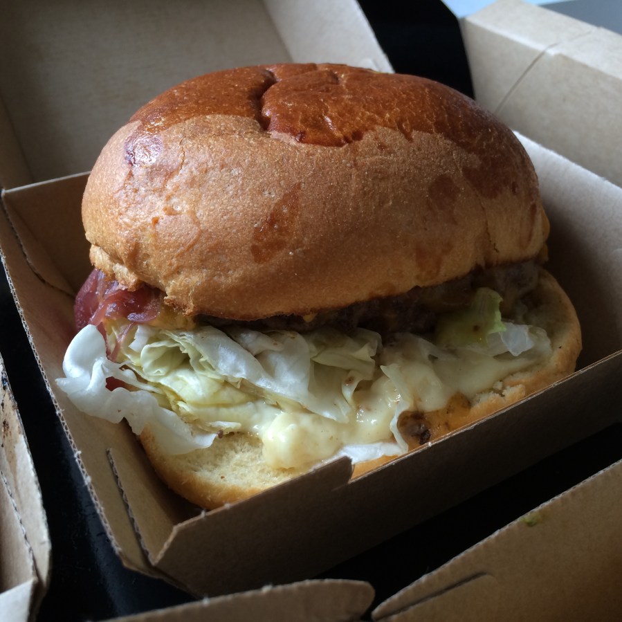 Bon burger, tous les ingrédients se marient bien. Le pain brioché c’est une excellente idée ! Il est aérien et ne se brise pas. Néanmoins j’émets une petite réserve concernant la mayonnaise qui prend le dessus, par conséquent je n’ai pas senti le goût du ketchup et de la moutarde.