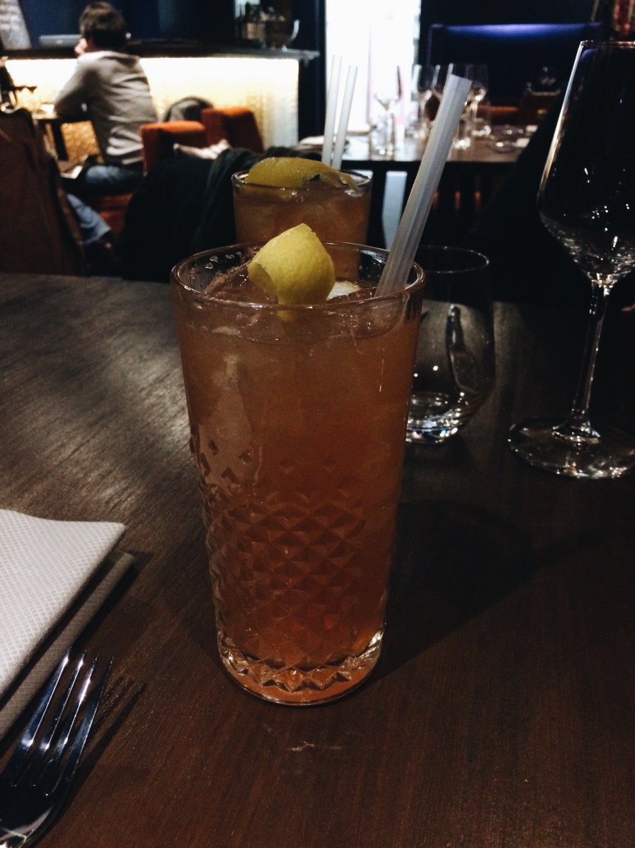 Comme cocktail mon choix s’est arrêté sur le Chilcano, à base de jus de citron, de gingembre, Pisco acholado (eau-de-vie de vin), bitter angostura (à base de rhum), de gentiane (fleur), d’écorces d’orange, de substances amères et d’aromates et de Jack Daniel’s. Au début j’ai trouvé le goût assez spécial mais cela est dû aux épices ajouter au cocktail, mais au fil du repas je m’y suis habitué et j’ai su l’apprécier.