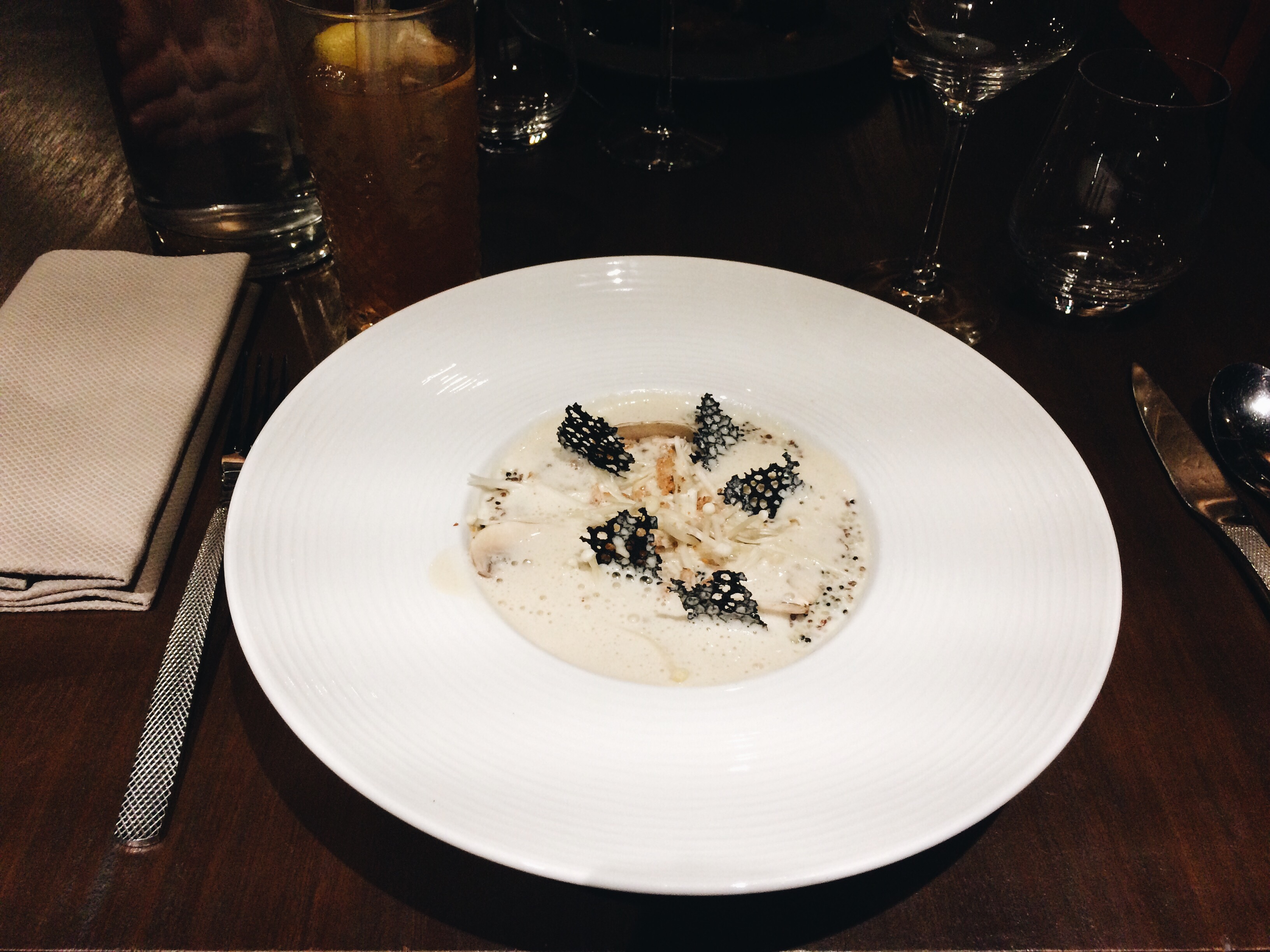 Concernant le plat principal, mon choix s’est arrêté sur un risotto de quinoa avec une mousse de truffe. J’ai trouvé cette recette très audacieuse, d’autant plus que j’aime beaucoup le risotto, le quinoa ainsi que la truffe.