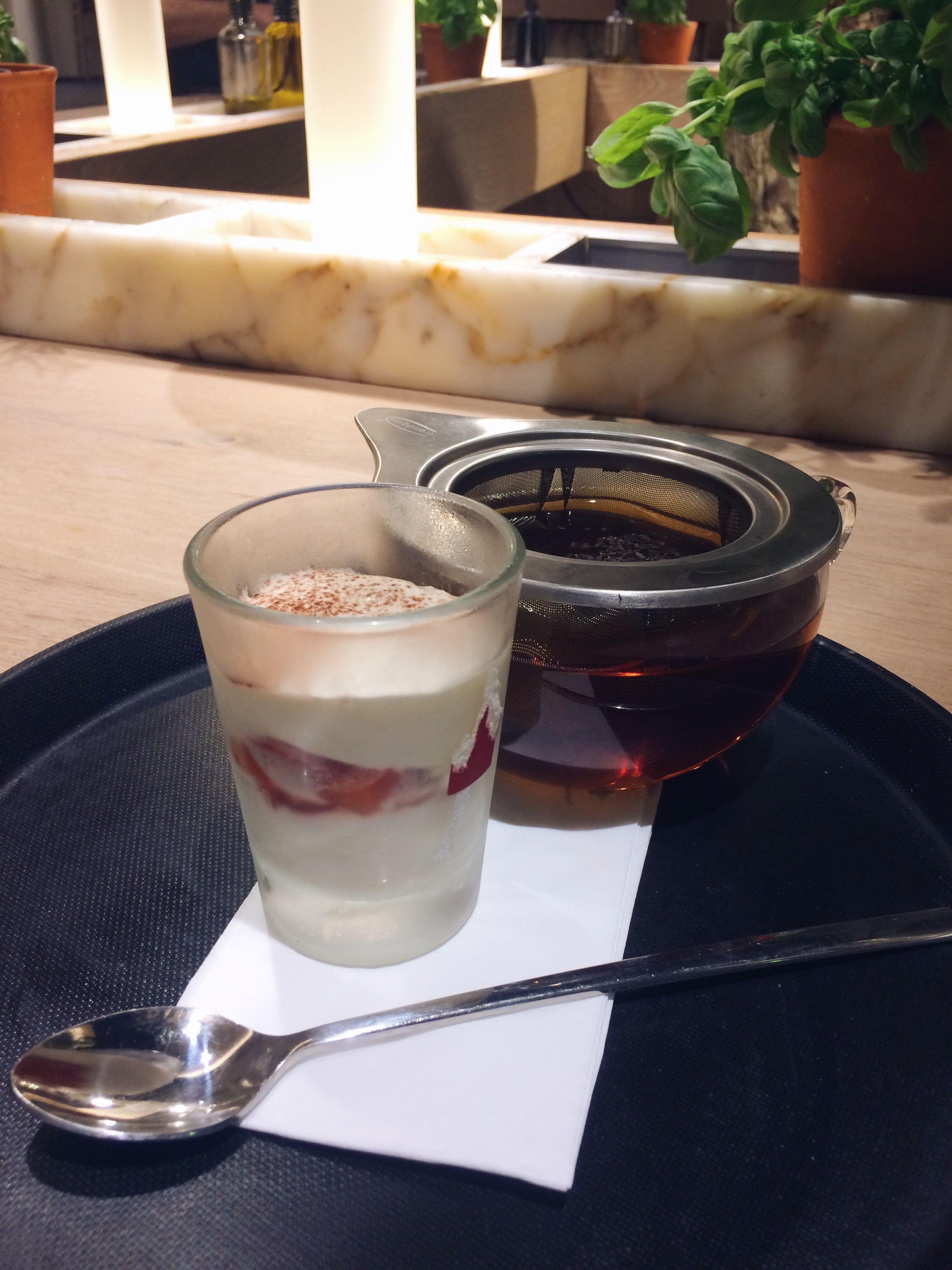 En général je ne suis pas une grande fan de ce genre de dessert mais j’ai été agréablement surprise et j’ai trouvé la pannacotta bonne, douce et pas lourde. Le thé était bon et terminait parfaitement bien ce repas.