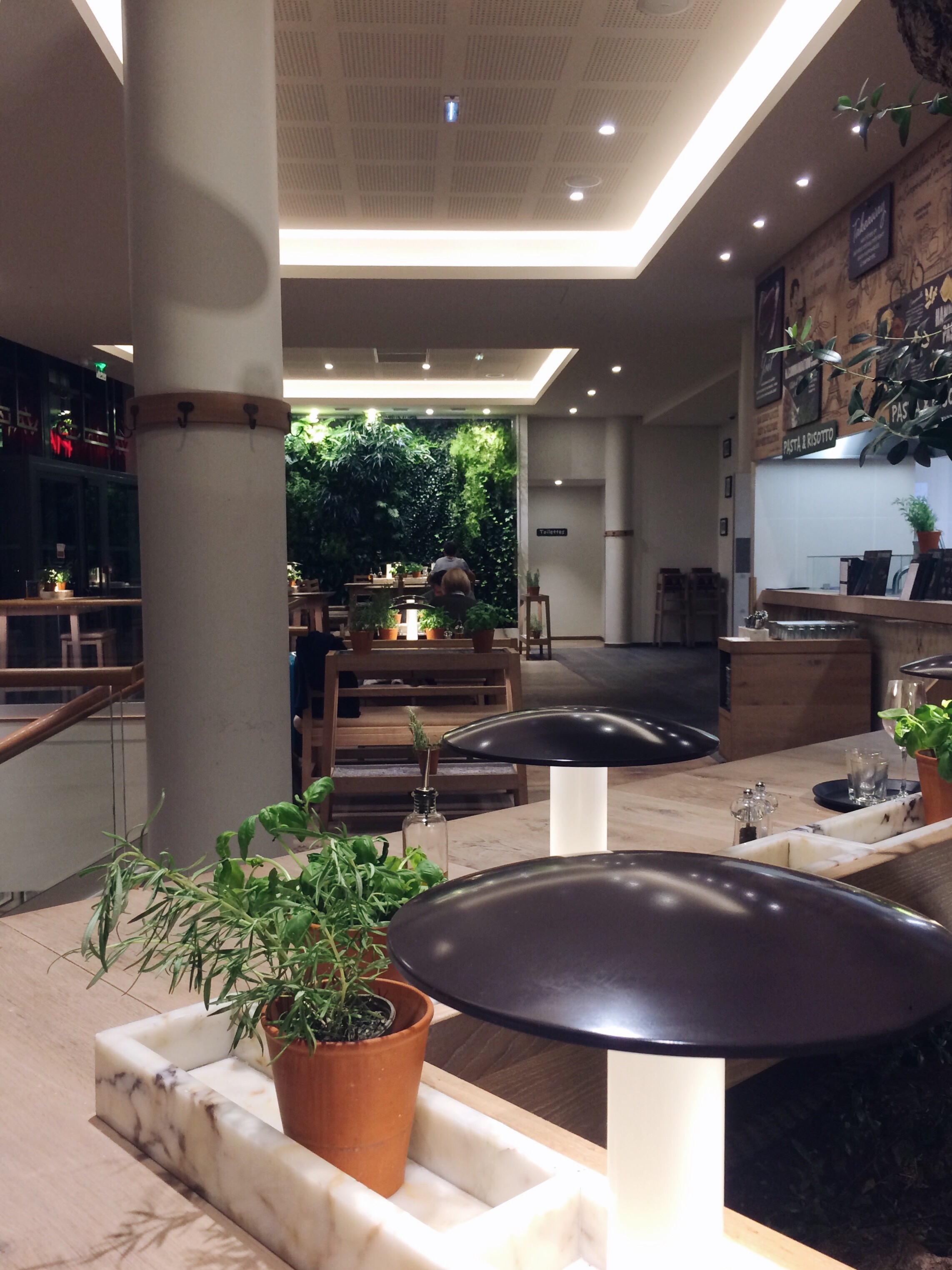 Coup de coeur pour le mur végétal et les plats ont l’air très bon. Top ta salade de quinoa avec toutes ses couleurs!