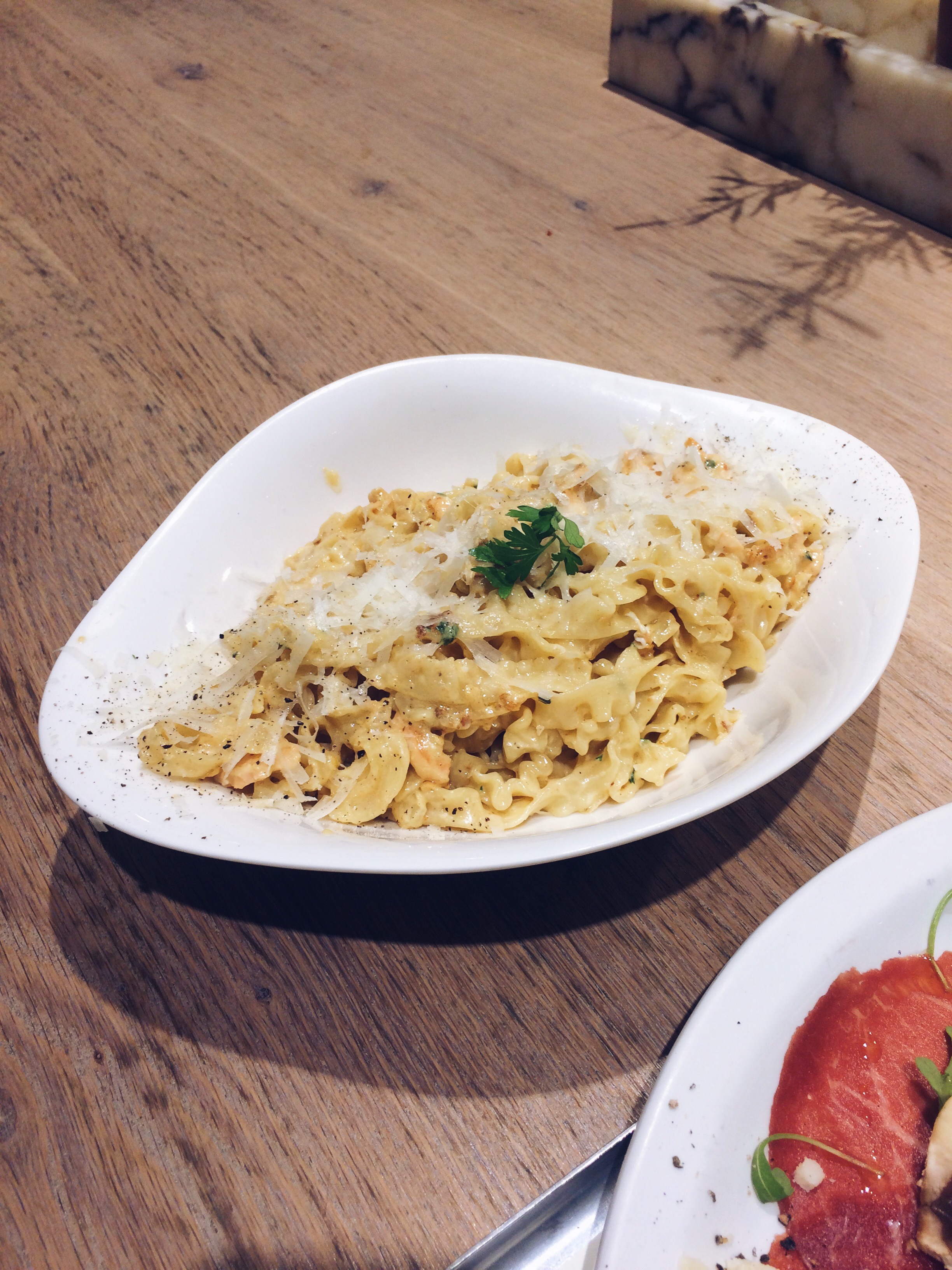 Mon invité quand à lui, a pris des pâtes au saumon et qu’est-ce que c’était bon !