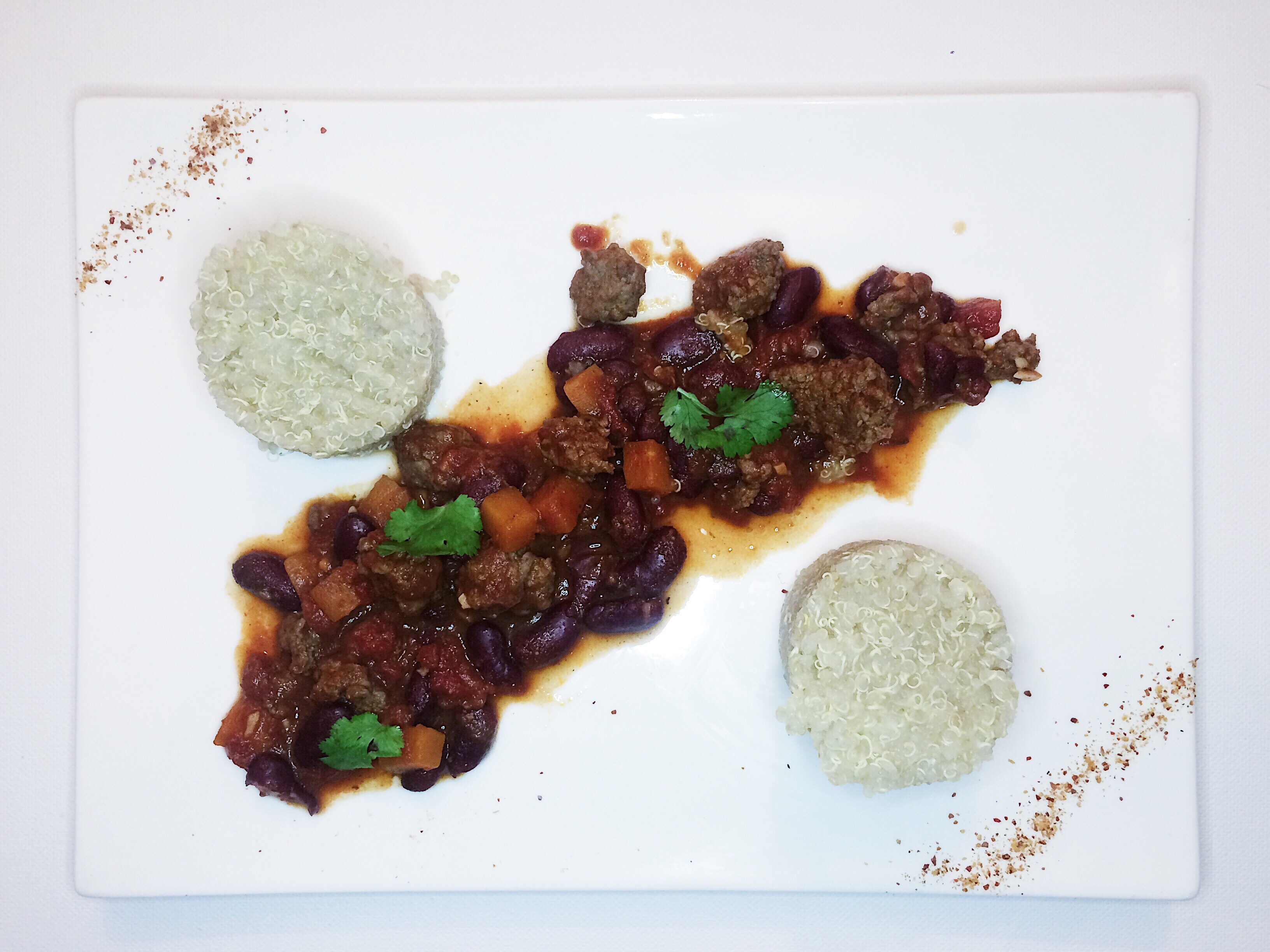 Le troisième jour on a mangé un chili con carne. Alors on a aimé sauf le quinoa qu’on n’a pas trouvé au top pourtant on a respecté le temps de cuisson. Concernant le chili nous avons vraiment aimé même si on a dû rajouter plus d’épices car on le trouvait un peu fade. Comme il y avait pas mal de chili et de quinoa nous avons décidé de le déguster avec des fajitas.