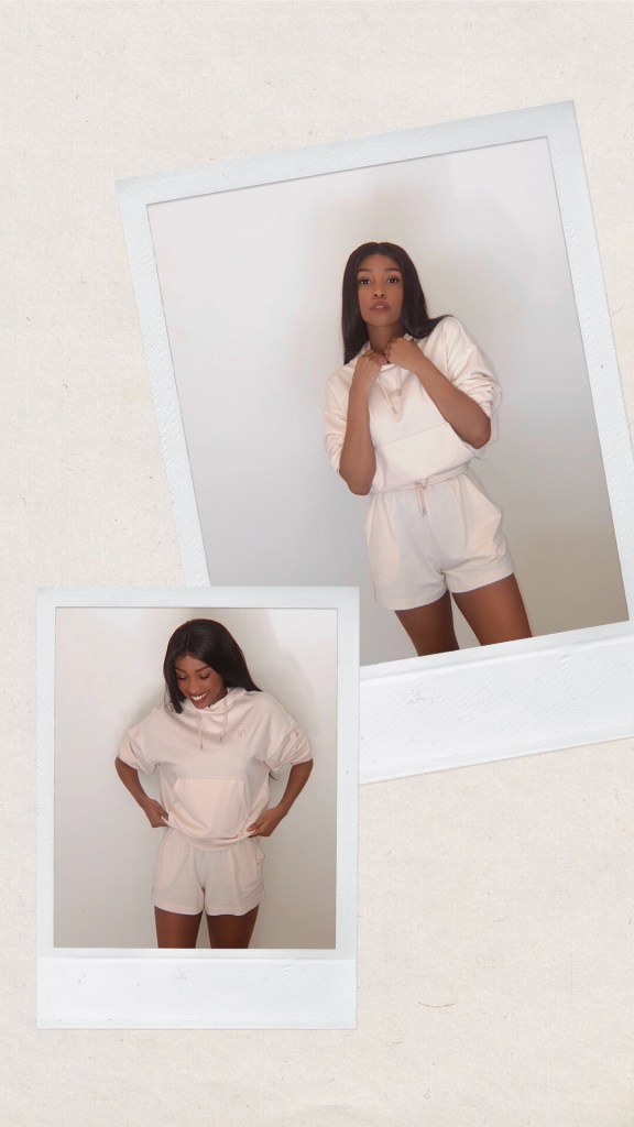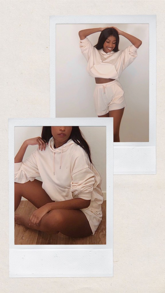 J’ai choisi un ensemble comprenant un sweat à capuche ainsi qu’un short en coton biologique pour mon plus grand plaisir ! Idéal pour rester à la maison pour chill ou pour sortir tout en étant à l’aise.