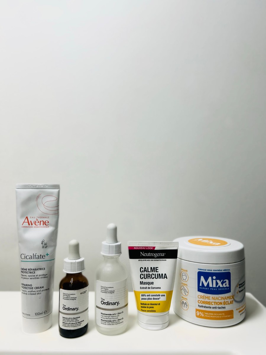Tu y retrouveras notamment des marques comme The Ordinary, Neutrogena, Garnier, Avène, Mixa ou Uriage, toutes reconnues pour leurs formules pointues à prix mini. Voici ma routine beauté complète, à petit prix… mais grand impact !