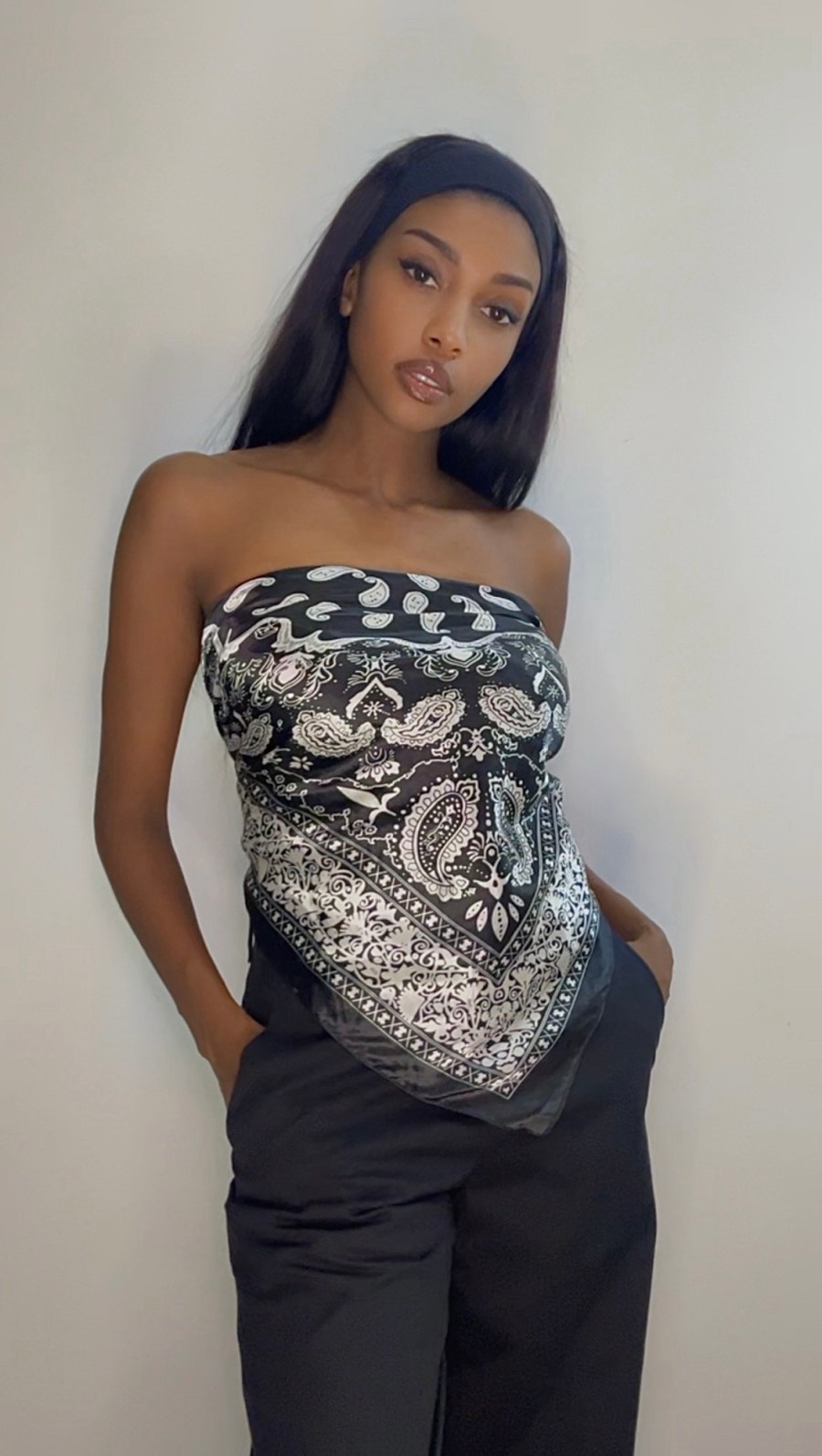 Idéal en été, le foulard peut aussi se transformer en petit haut féminin et sexy, surtout avec un dos nu. C’est une façon audacieuse de détourner cet accessoire pour un look tendance et estival.