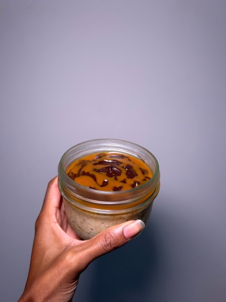 Overnight oats banane, flocons d’avoine, chocolat noir & caramel maison : un petit-déjeuner healthy et gourmand